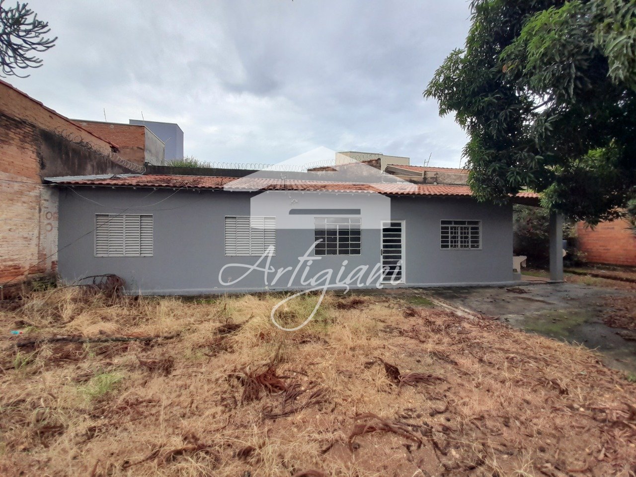 Casa com 2 dormitórios, sala, cozinha e banheiro, área de serviço coberta, quintal grande arborizado, garagem p/1 carro e entrada p/vários carros, forro, área construída 70m²